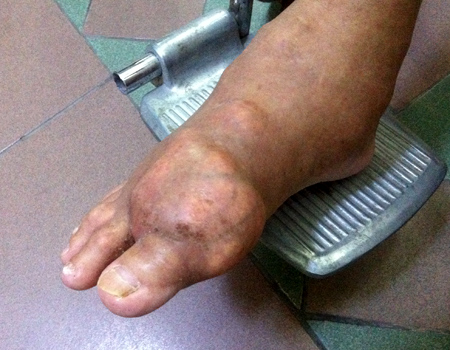 Khớp chân của bệnh nhân phù nề bởi các khối tôphi do Gút gây nên